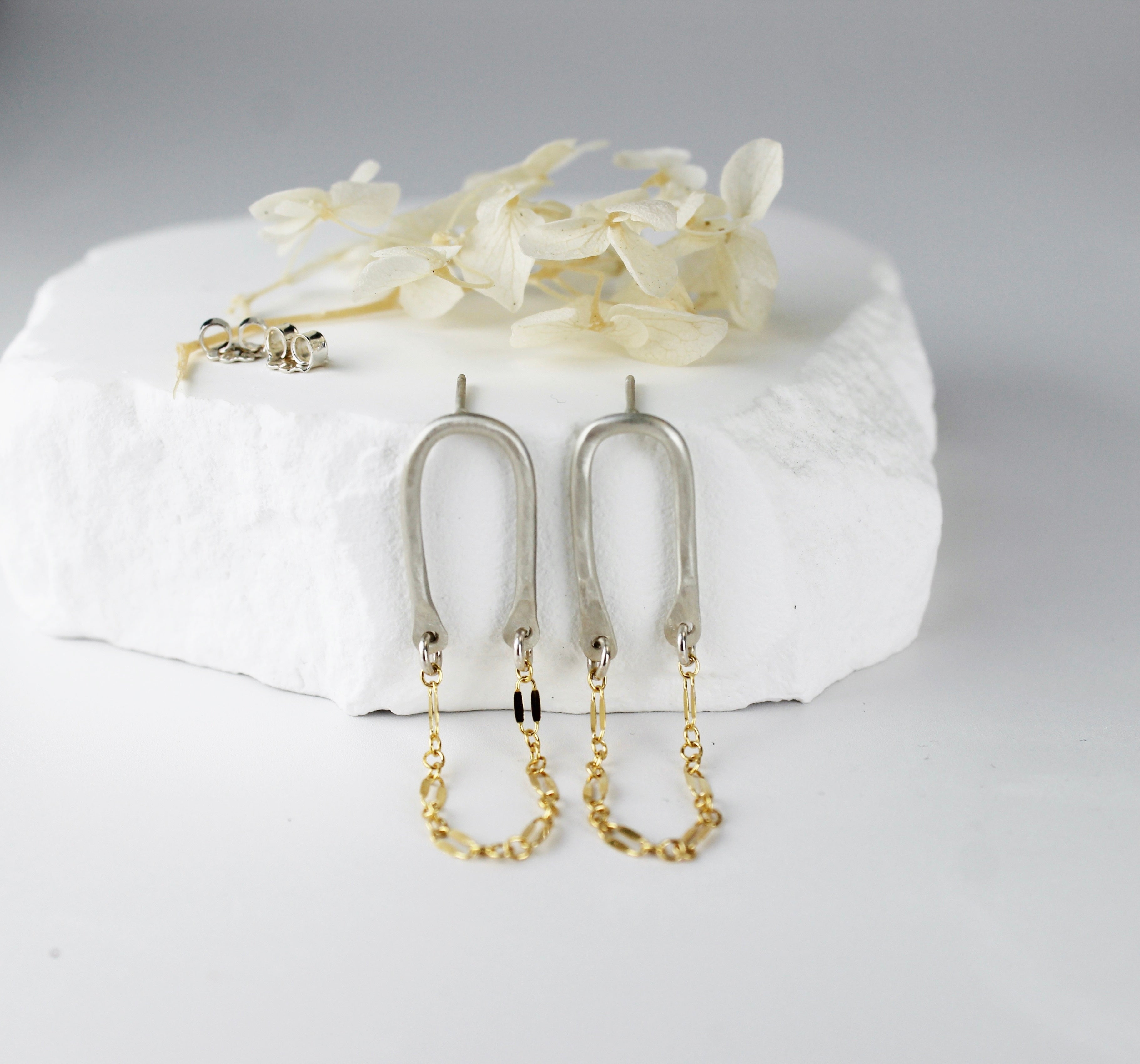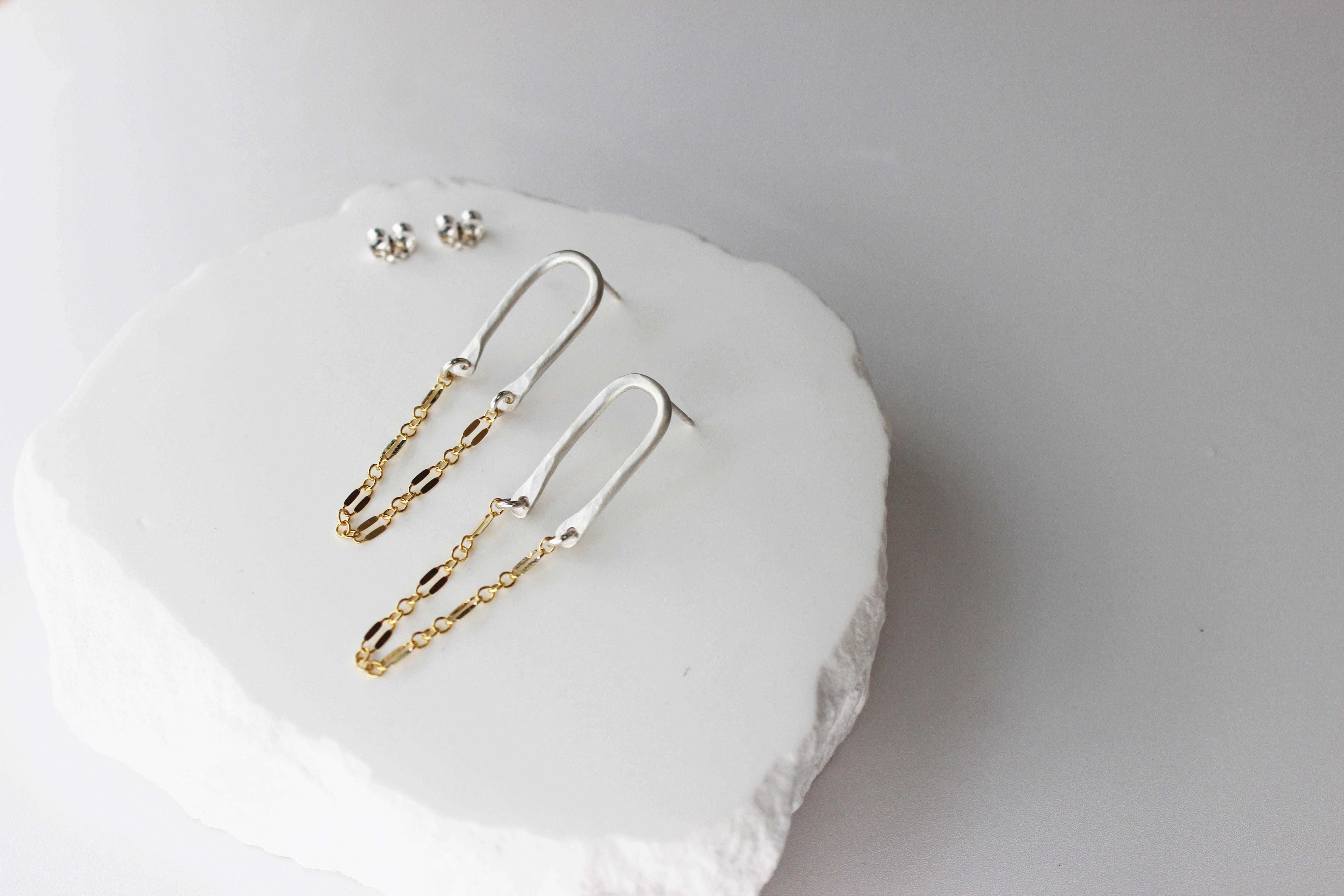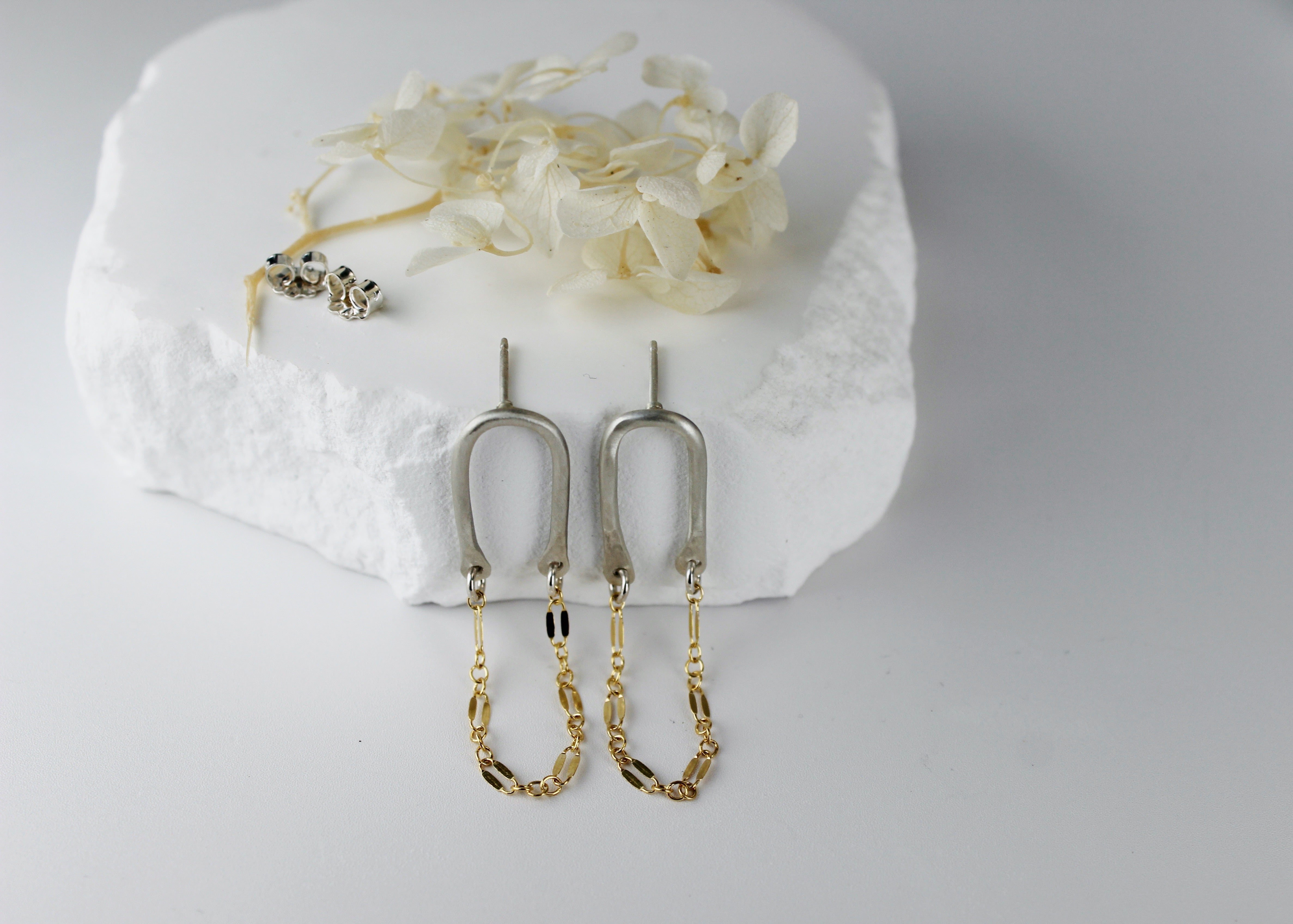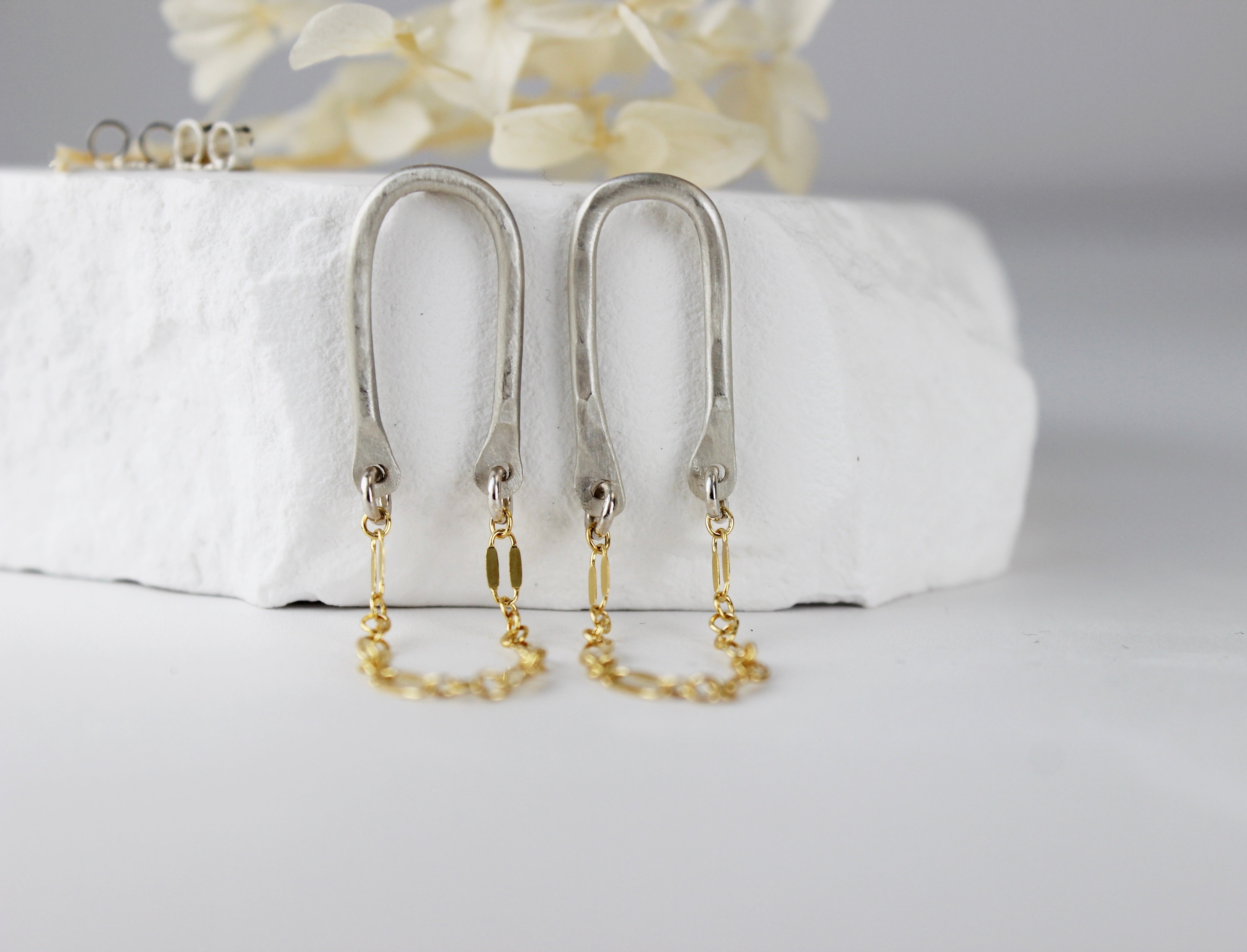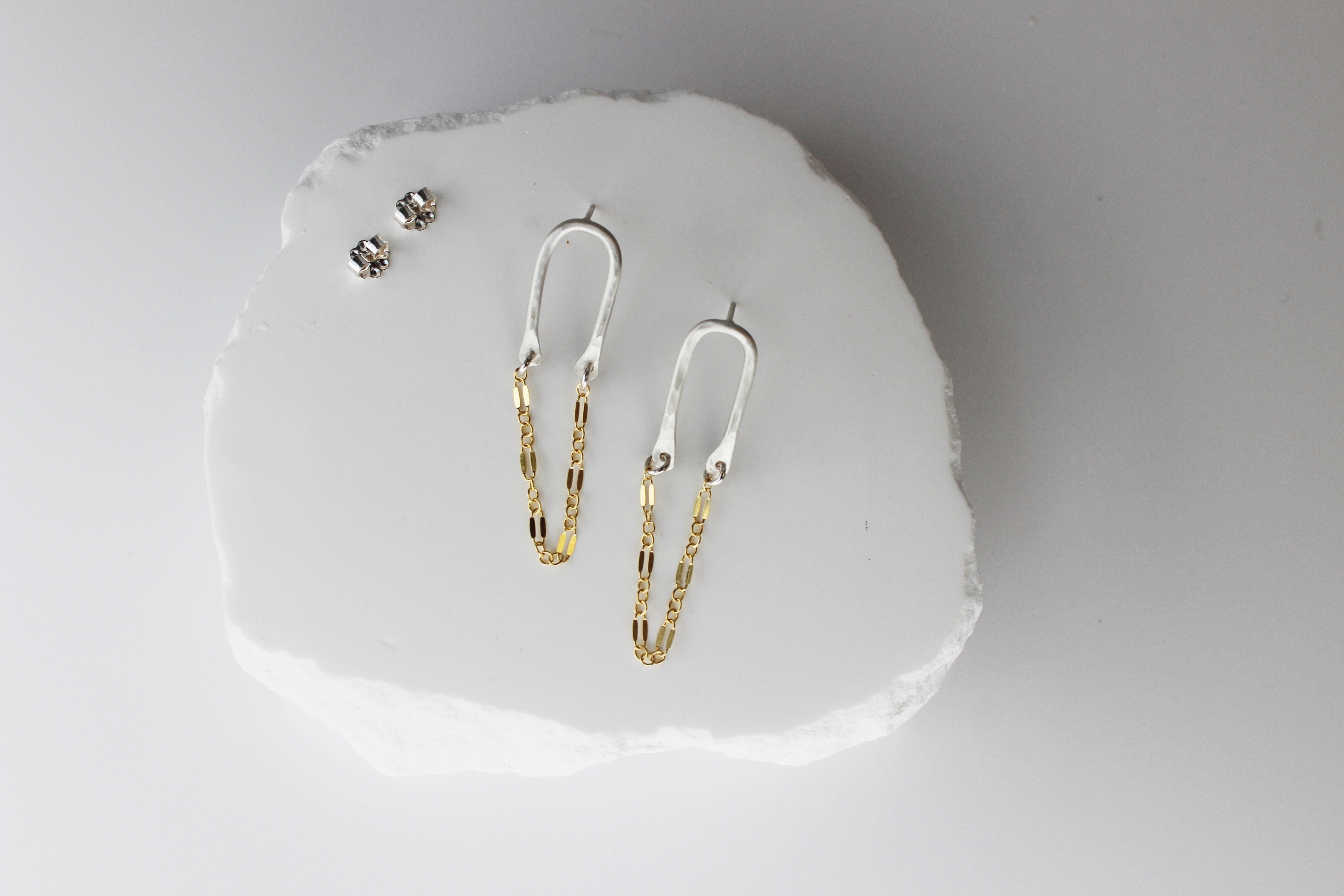 Dangle earrings featuring gold-filled chain and sterling silver wire.