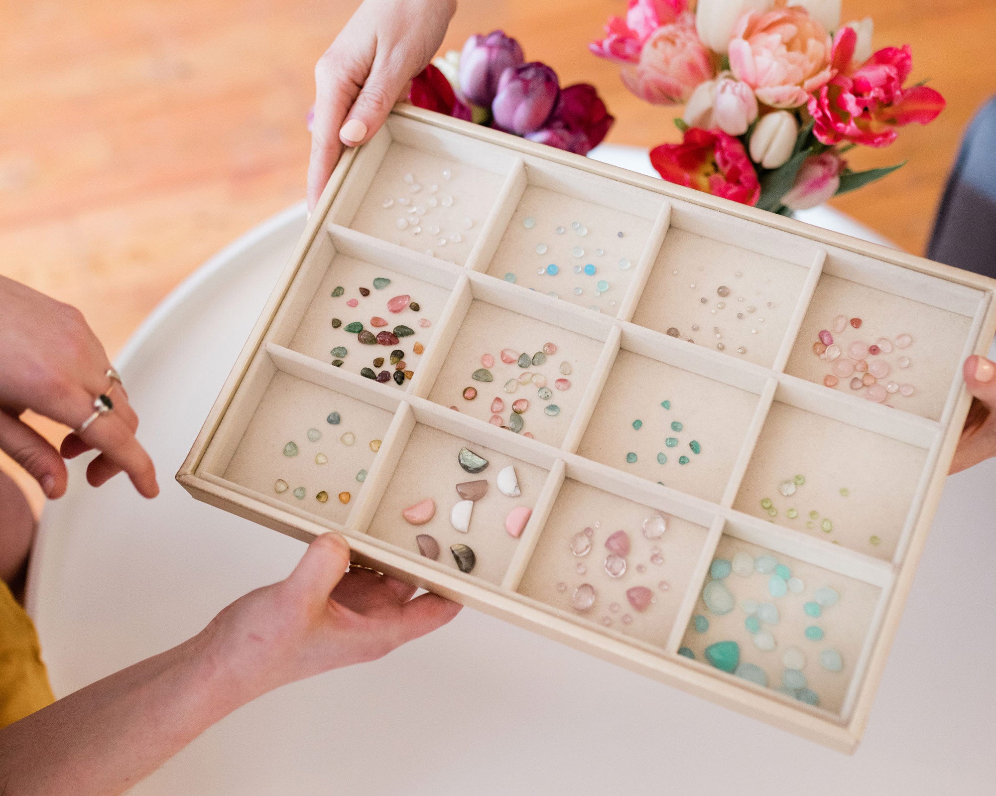 Stacey will start by asking you a few questions, showing you design samples, and exploring gemstone options. This helps her get crystal clear on what you’re envisioning for your custom piece. Feel free to share any photos, illustrations, or other sources of inspiration with her too!