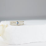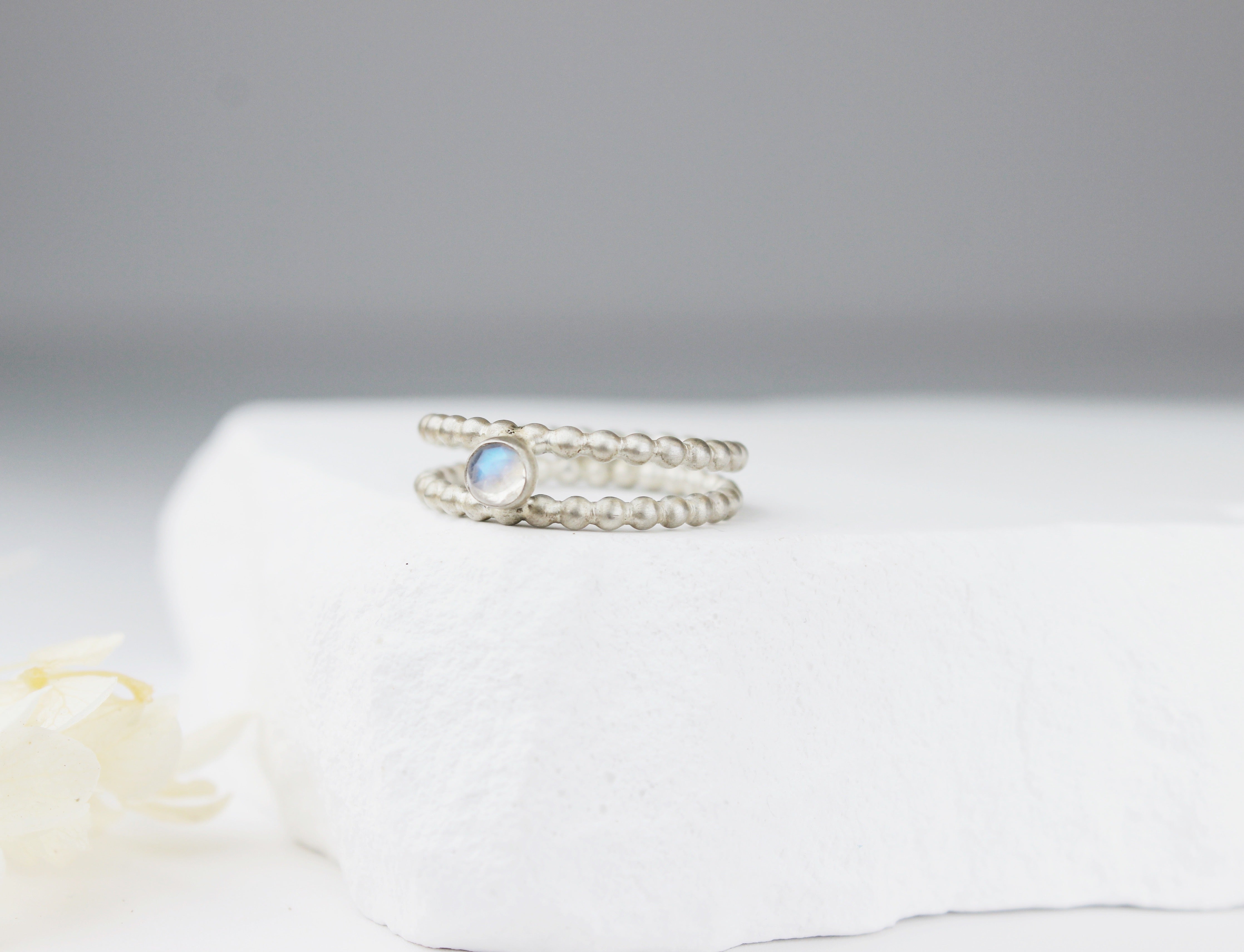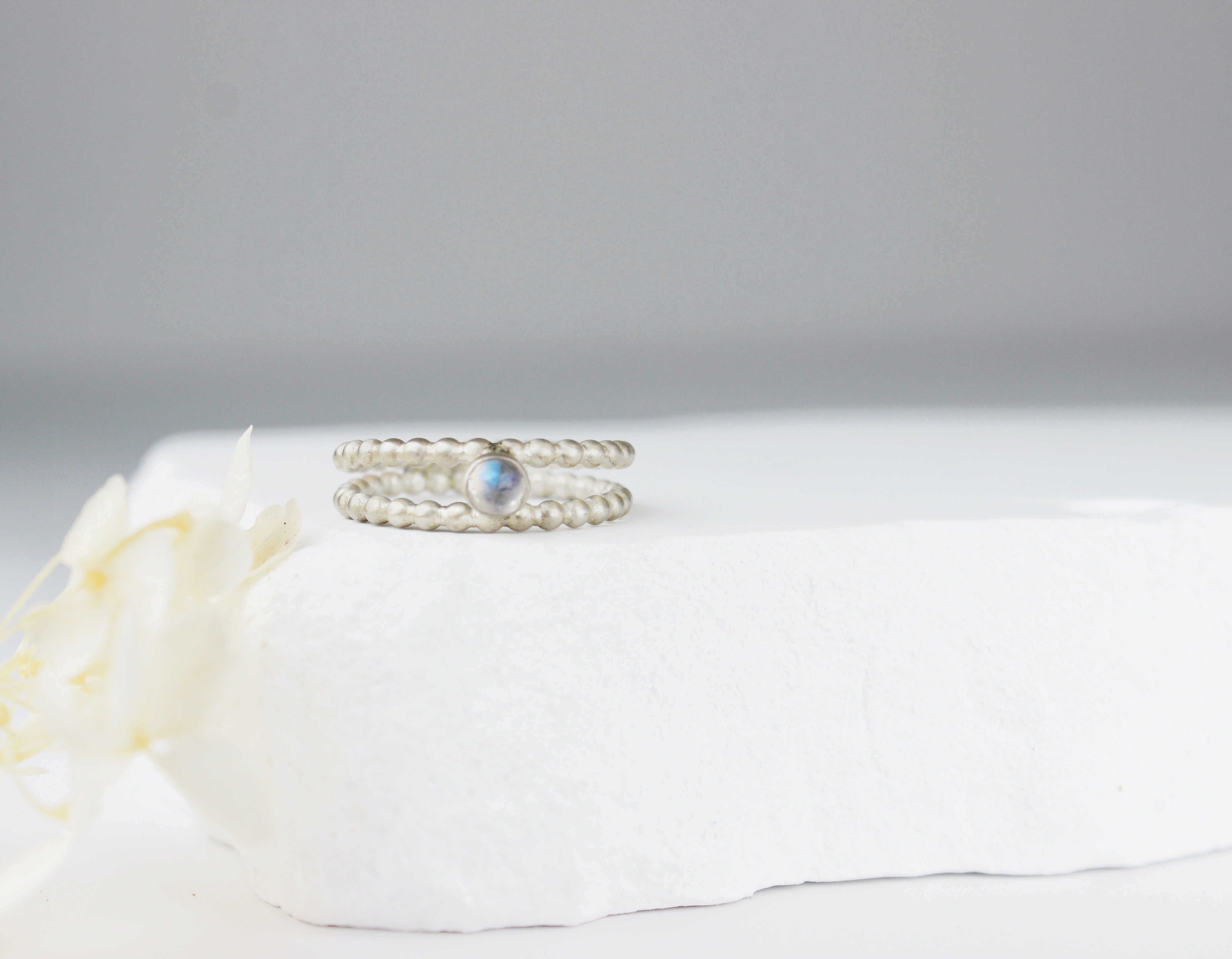 Sweet double-banded silver sterling ring with iridescent moonstone gem in size 7.